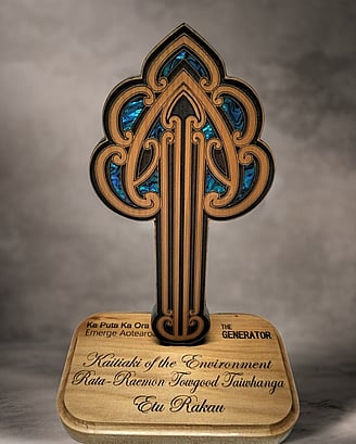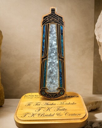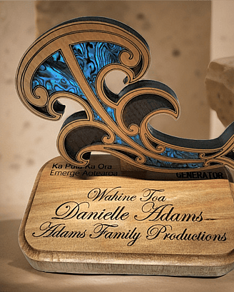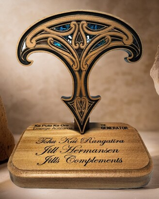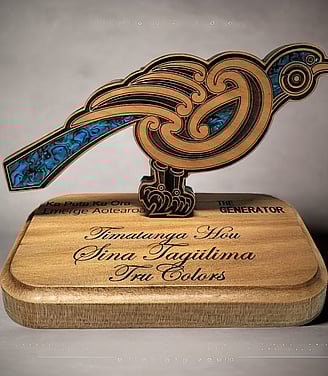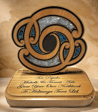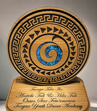 These trophies are made from NZ Kauri and laser engraved we can use your design or create one for you