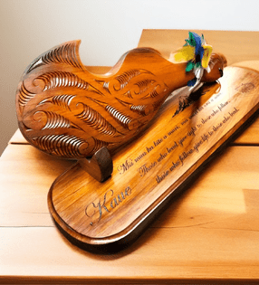 We offer a range of different Māori carvings. This portfolio is of works created by Mark Lang. Please note we are extremely busy and all work to be commissioned will take between 2-3 weeks to complete. Please get in touch and we can get started on your Taonga for that significant event. Photos are for reference